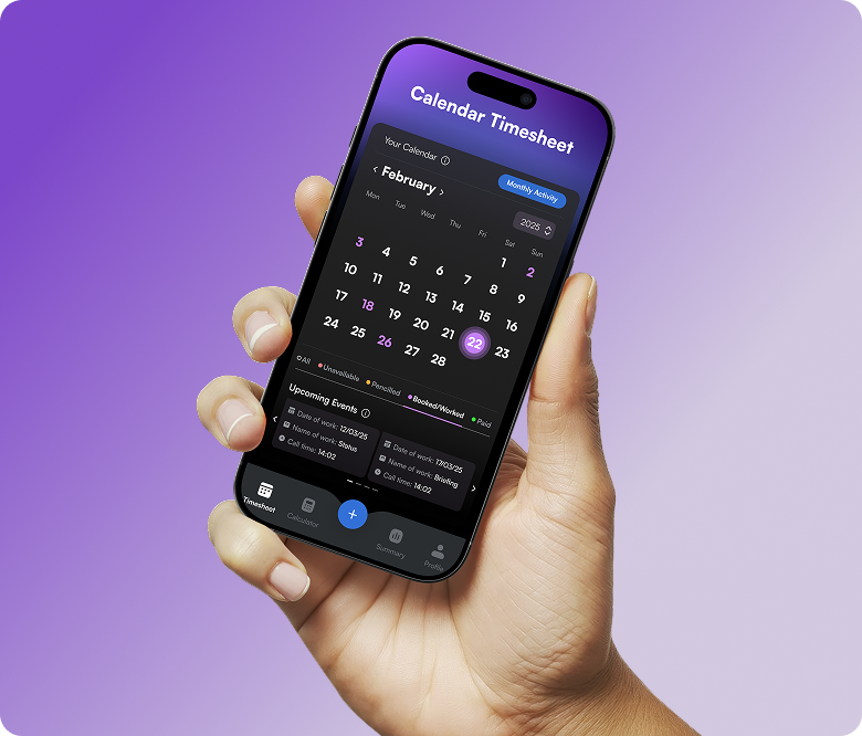 Effortlessly log your work days with a smart calendar designed for the film and TV industry. Track each shift, update job status from pencilled to paid, and view your progress at a glance, all in one simple, organised view.